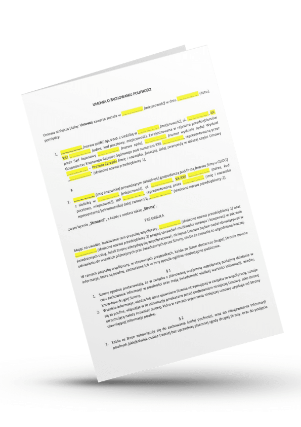 Wybierając nasz produkt, otrzymujesz gotowy do uzupełnienia i podpisania dokument zawierający wszystkie niezbędne, zgodne z prawem postanowienia. Nasza umowa o zachowaniu poufności nda obejmuje między innymi: