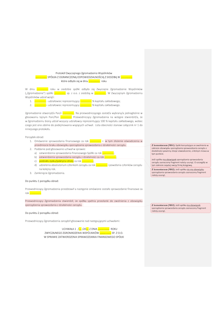 Co zawiera nasz wzór protokołu Zgromadzenia Wspólników?